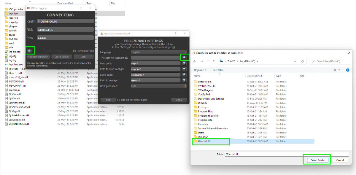 4. Choose The path to Warcraft III (1.26) path folder. Note: ING client can connect to 1.27 or 1.28 servers with Warcraft III 1.26. You don't need multiple versions of war3, version 1.26 are enough.