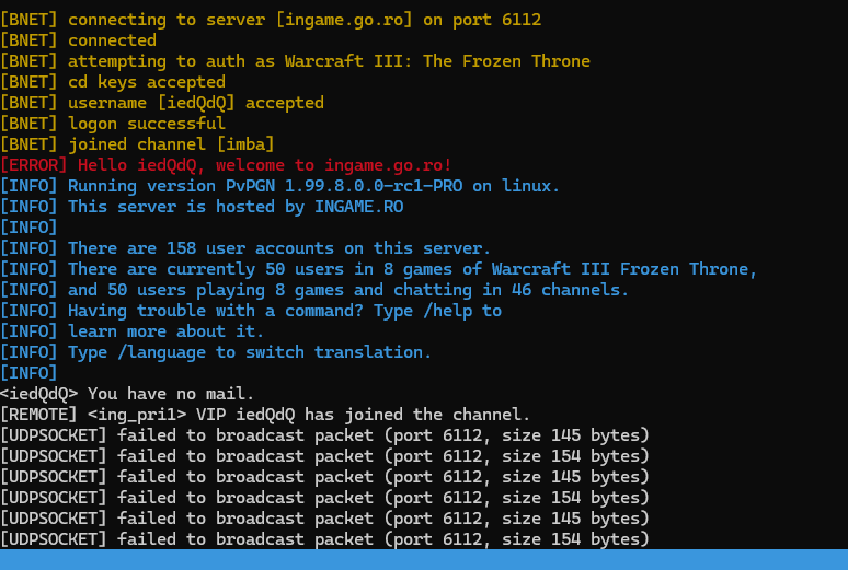 2. Since yesterday I have this kind of error starting after around 1 minute of gproxy working. Also there is no games available in W3. Is it a common problem?