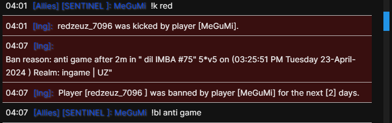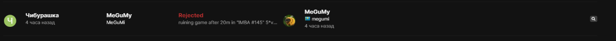 Просто чувак забрал контроль свой у мегуми,на что сходу же получил бан типо за руин игры и кик,а после кикнутый подал заявку на разбан которую мегуми же и отклонил